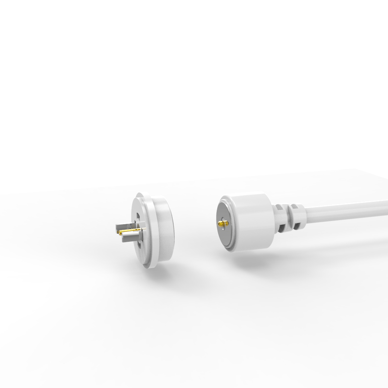 Conector de cabo de carregamento magnético branco redondo para copo de água inteligente, conector de cabo magnético têm a vantagem de adsorção automática, fácil de operar.Os pinos têm uma boa condutividade elétrica, não é facilmente corroído num ambiente severo.